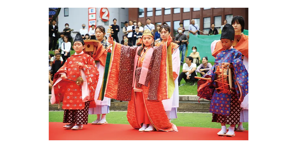 この地にて舞い降りた愛らしいかぐや姫が鈴を持ち、舞を奉納した後、口上を述べて行列が出発します。