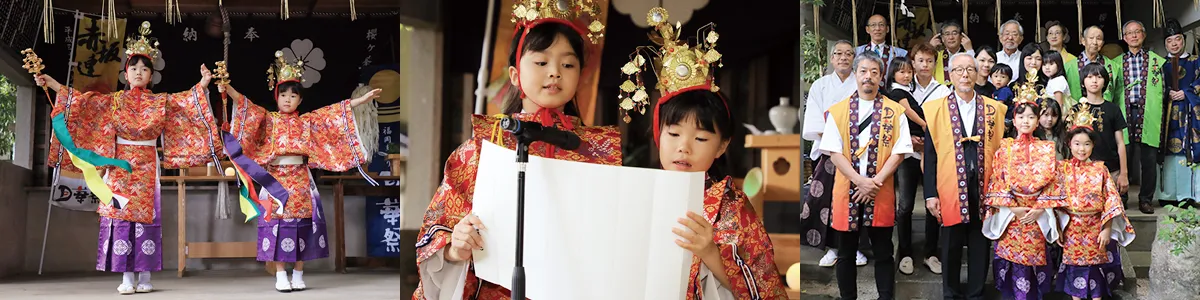 愛らしいかぐや姫が奉納神事を通して日本古来より培われてきた大和心を伝え、子どもからお年寄りまで地域の人々が絆を深め、秋の風物詩として福岡の新しい文化となることを目指します。